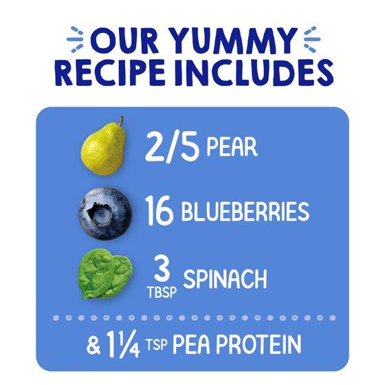ORGANIC PEAR PUREE, ORGANIC BLUEBERRY PUREE, ORGANIC SPINACH PUREE, ORGANIC PEA PROTEIN, MILLED ORGANIC CHIA SEEDS, ORGANIC LEMON JUICE CONCENTRATE, ASCORBIC ACID (VITAMIN C), ORGANIC BLUEBERRY FLAVOR.