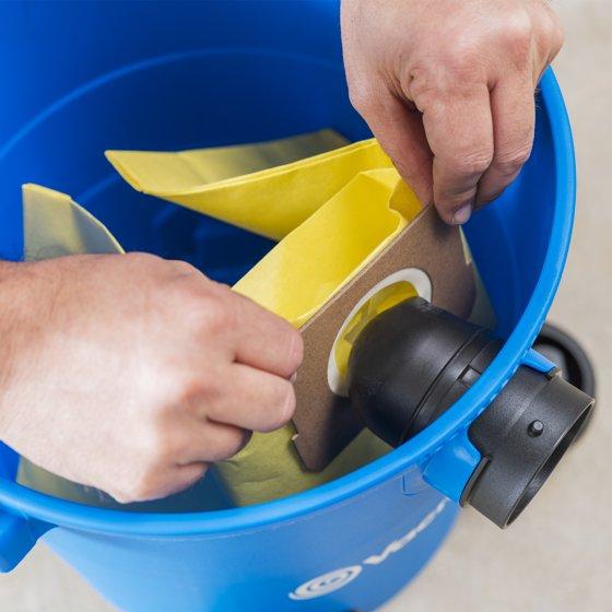 - For dry pick-up of drywall dust, sawdust, and other fine debris
