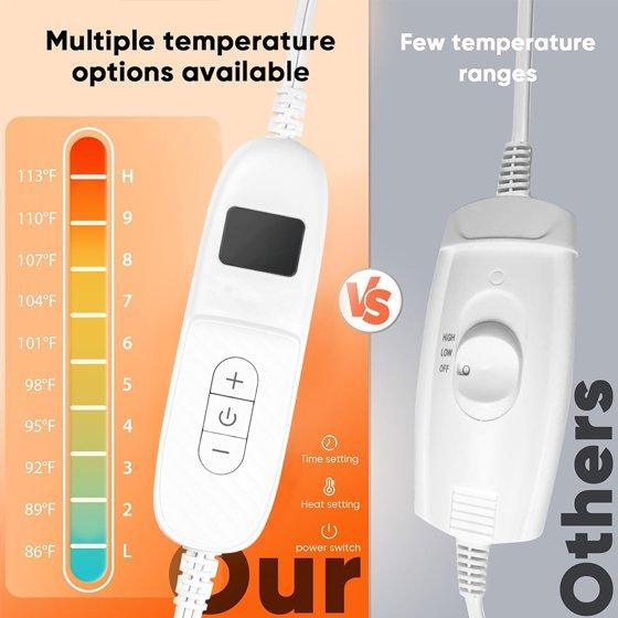 - 10 Heat Settings & Automatic power-off: No complicated operations, 10 level heat adjustment is easy to use. 120 min auto-off function help you conserve energy and prevent burns caused by excessive heating.So you can enjoy the warmth without safety concerns.