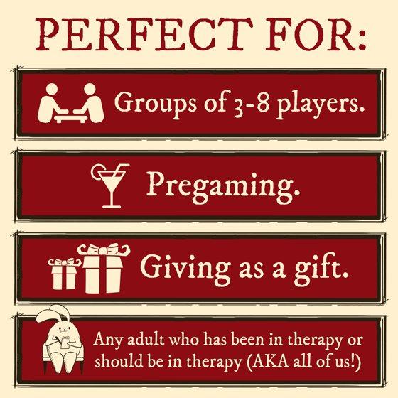 - Where to Play: WANT TO BREAK THE ICE AT PARTIES? This is a card game for adults that’s great for pregaming, large gatherings, road trips, vacations, or for giving as a gift to anyone who appreciates a funny card game (or who needs therapy!). Perfect for all adult party games and games for adults.
