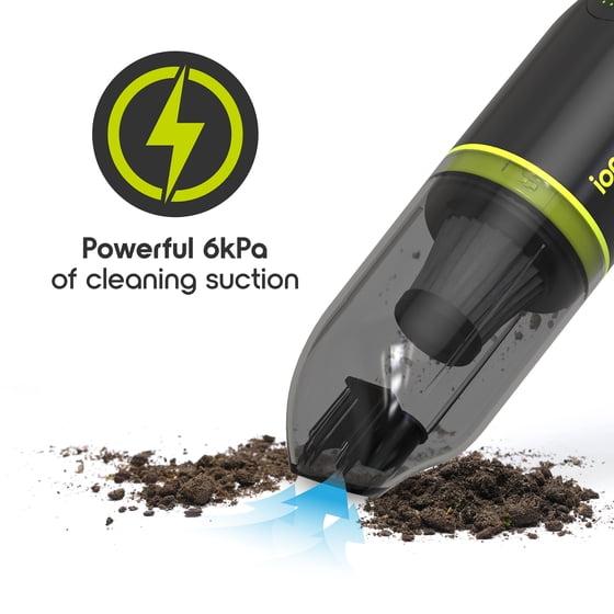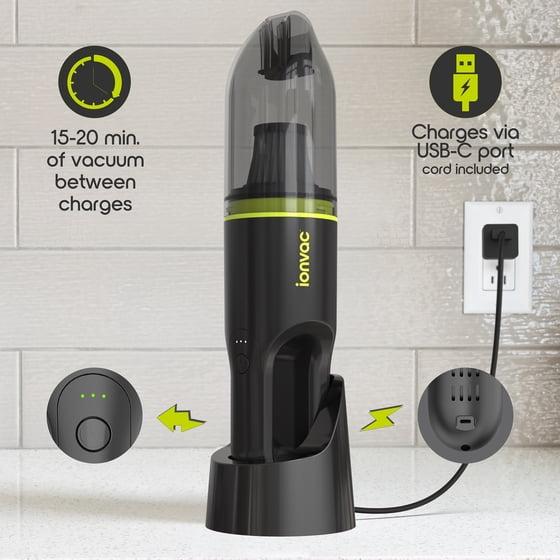 - Includes – new ionvac handheld cordless vacuum cleaner, Crevice Nozzle, Dust Brush, and USB charging cable