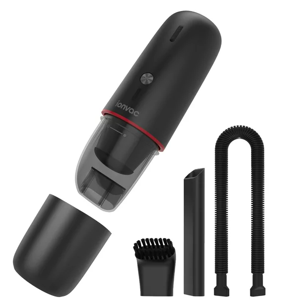 The new IonVac Cordless Vacuum cleaner is designed to pick up dust, debris, pet hair, and dirt from the smallest crevices on any surface, hard floor, or carpet. Its lightweight 2 lb. cordless function and incredible powerful suction make cleaning your carpet or car a breeze, great for tackling messes instantaneously. Choose from two different attachments, a crevice nozzle, or a brush attachment for upholstered furniture and sensitive surfaces. The crevice nozzle allows you to clean in tight hard-to-reach places along the base of walls and in corners, gaps in car seats and furniture. The nozzles can easily be attached and removed for enhanced cleaning, while it's easy to clean dust collector and filter can be emptied instantly. Plus, this mini vacuum has a built-in rechargeable battery to charge from any wall outlet or USB power source.