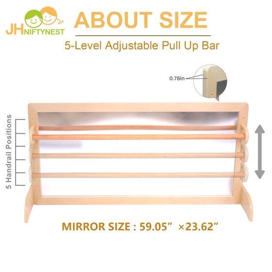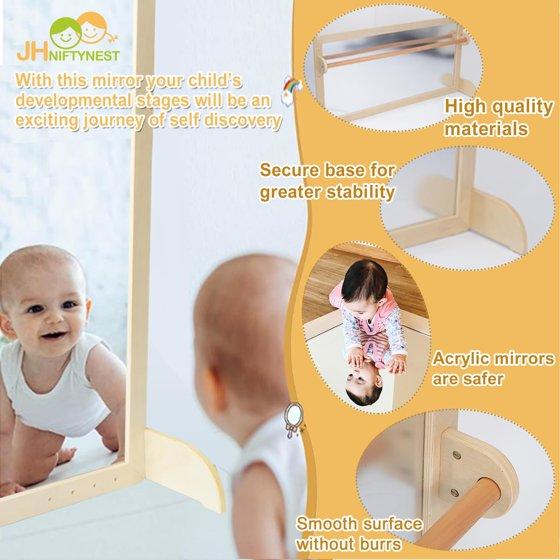 JHNIFTYNEST 3-in-1 Montessori Infant Mirror | Safety Pull Up Bar Dual-Use Base | Shatterproof Acrylic Non-Glass | Newborns to Teens 59.05"