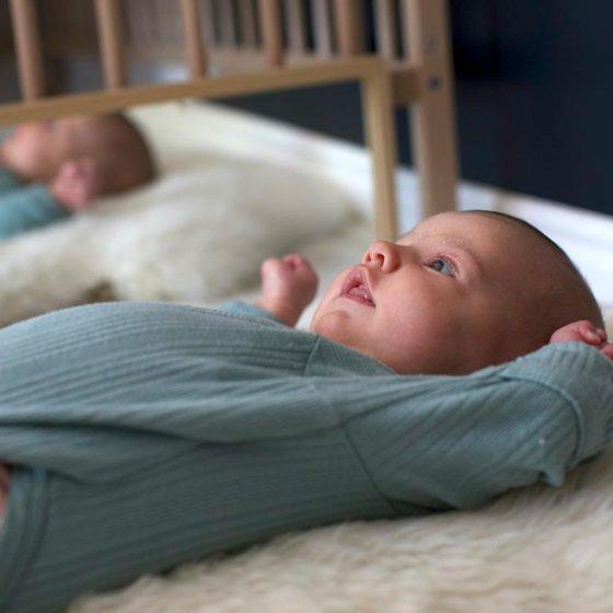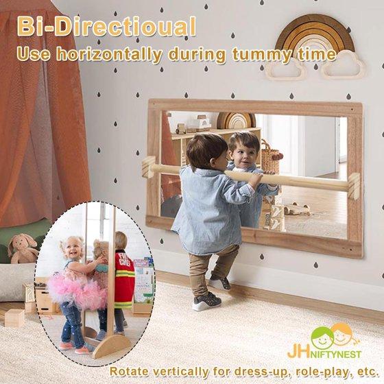 - 3-in-1 design: lay flat for infants, stand vertically for toddlers, or wall-mount as a full-size mirror.