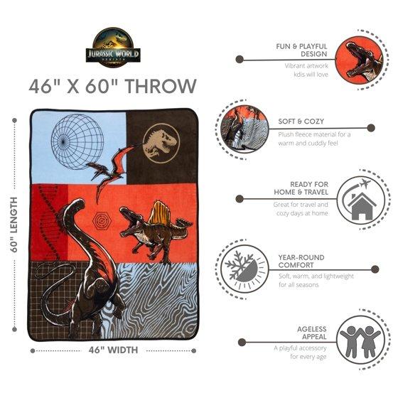 - Jurassic World Kids Blue Orange Dinosaur Print Fleece Throw Blanket, 46 x 60