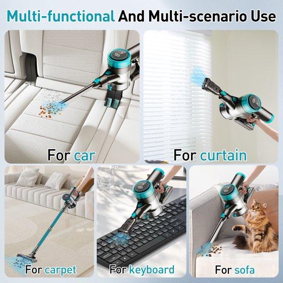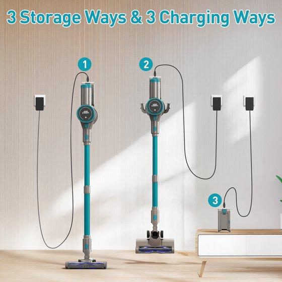 - [Touch Screen & LED Display] You'll love the large touch screen LED control panel! It's super easy to show the battery level, suction modes of the stick vacuum. This design is more convenient and trouble-free compared with traditional button operation, so you can get on with your day without any fuss!