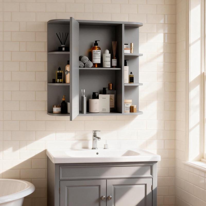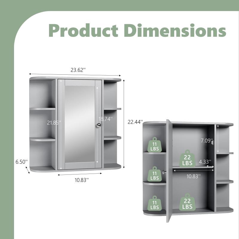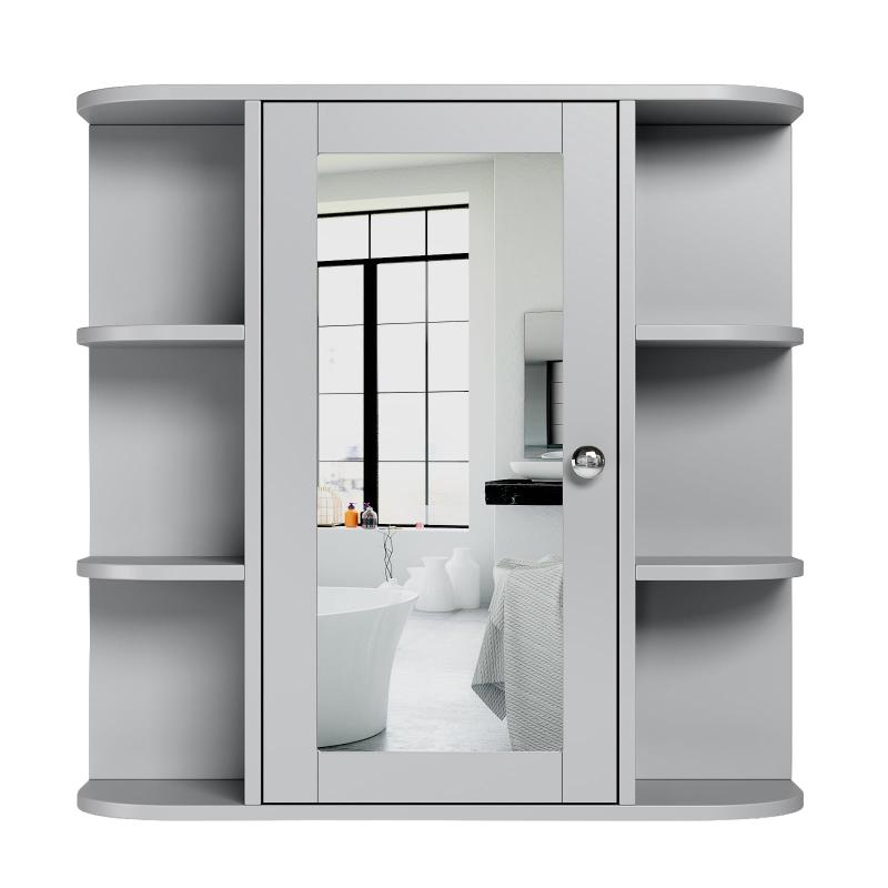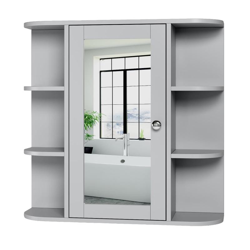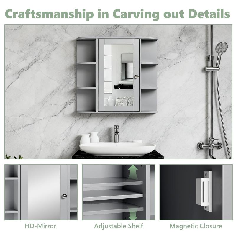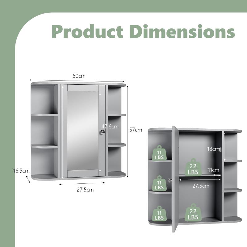 Ktaxon bathroom wall cabinets add valuable hidden storage to any bathroom with limited floor space. Exterior side 6-layer storage shelves, 2-layer storage space, interior adjustable shelves, MDF wood board material adapts to the humid environment of the bathroom, can be used as a storage helper and bathroom mirror. The classic gray finish adds elegance to your decor.