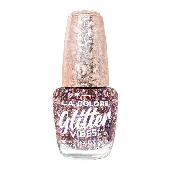Sparkle, shine, and show off your style with the L.A. COLORS Glitter Vibes Nail Polish collection. Designed for maximum dazzle, this glitter-packed polish delivers high-impact sparkle in every swipe. Whether worn alone for a bold statement or layered over your favorite base color for a custom effect, the multidimensional glitter finish instantly elevates your manicure. The formula glides on smoothly and dries to a long-lasting, eye-catching shine that makes your nails stand out from every angle. With a variety of glitter colors and finishes—from fine shimmer to chunky sparkle—the Glitter Vibes collection offers something for every mood and moment. The precision brush ensures even application, while the fast-drying formula makes at-home glam easier than ever. Perfect for parties, festivals, or anytime you want to add a little extra fun to your fingertips, L.A. COLORS Glitter Vibes Nail Polish lets you express your sparkle your way. Let your nails do the talking—vibes only.