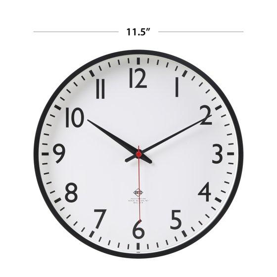 The 11.5" diameter classic schoolhouse style wall clock is more than just a timepiece. It’s an accent piece that never goes out of style. The classic black frame, accentuated by the white dial, creates a striking contrast that draws the eye. The iconic red second hand adds detail and classic interest to the design. Accurate timekeeping is powered by a quality quartz movement. The nostalgic vintage vibe of this clock, combined with its solid design and classic numbers font, makes it an exquisite piece that's perfect for any space. Whether it's your kitchen, living room, office, or even a classroom, this clock brings a touch of sophisticated charm to the atmosphere.