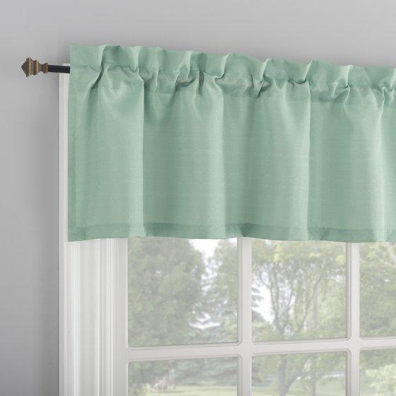 Enhance your kitchen, bathroom, or other small window with the Mainstays Textured Rod Pocket Kitchen Window Valance and Tiers Set. Casual textured fabric gently filters sunlight and enhances privacy. Simple rod pocket design allows for easy slide-through installation on curtain rods up to ¾" in diameter. Set includes 1 curtain valance and 2 tier curtains, measuring 56" width by 36" length. Measure carefully before selecting your desired size and quantity. Machine wash cold on gentle cycle. Use non-chlorine bleach when needed. Tumble dry on low heat, using a cool iron as needed.