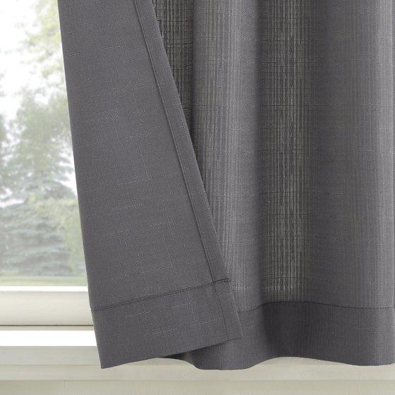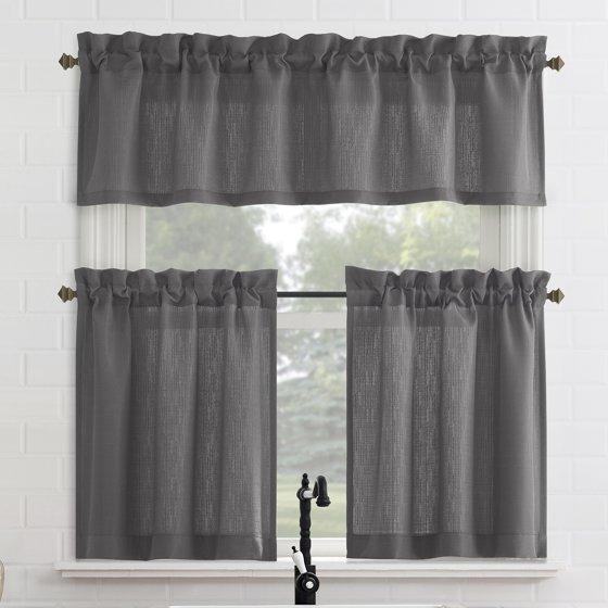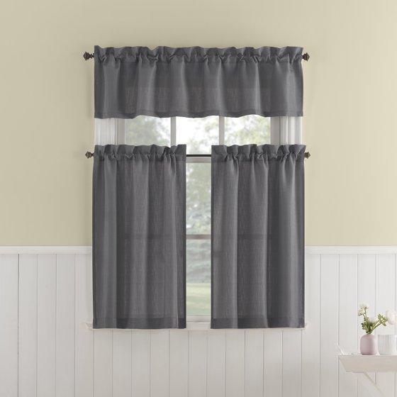 Mainstays 3-Piece Textured Semi Sheer Rod Pocket Kitchen Window Tier Pair and Valance, 2 Café Curtains and 1 Curtain Valance, Grey, 56"W x 36"L