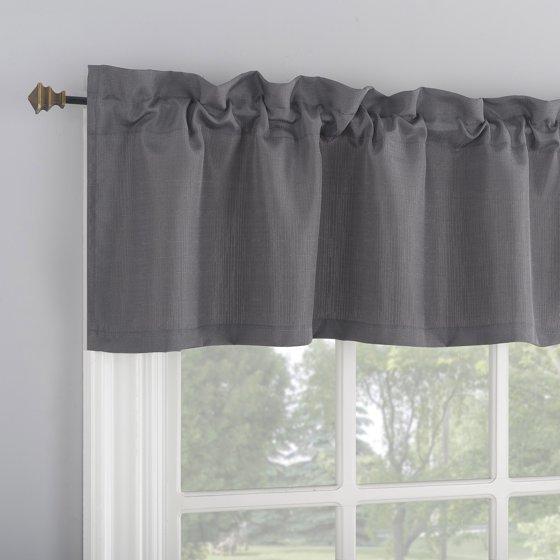 Enhance your kitchen, bathroom, or other small window with the Mainstays Textured Rod Pocket Kitchen Window Valance and Tiers Set. Casual textured fabric gently filters sunlight and enhances privacy. Simple rod pocket design allows for easy slide-through installation on curtain rods up to ¾" in diameter. Set includes 1 curtain valance and 2 tier curtains, measuring 56" width by 36" length. Measure carefully before selecting your desired size and quantity. Machine wash cold on gentle cycle. Use non-chlorine bleach when needed. Tumble dry on low heat, using a cool iron as needed.