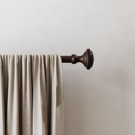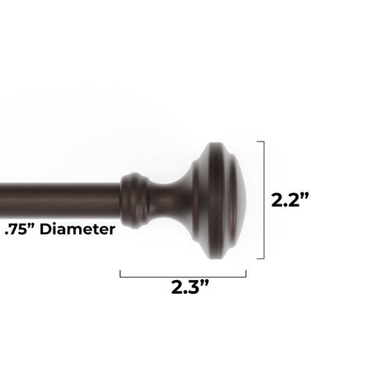 This unique Mainstays 3/4 inch diameter Sherry knob Single Drapery Rod in a bronze finish is perfect for any room. This single drapery rod set accommodates a variety of window widths by adjusting from 30 to 84 inches wide. The tools you will need for the installation: pencil, tape measure, drill or screwdriver.