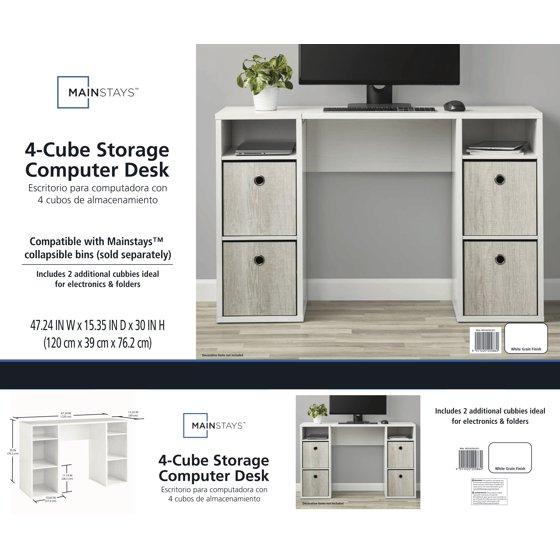 Mainstays 4-Cube Storage Desk, White Grain