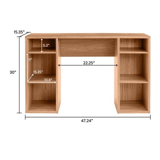 The Mainstays 4-Cube Desk combines the versatility of cube storage with a spacious top surface making it a functional and stylish addition to any home. With a 47.24" x 15.35" desktop it’s perfect for a laptop, computer monitor, homework, studying and more. This work space features a total of 6 shelves for storage and organization. The four lower shelves will fit Mainstays collection of 10.5" x 10.5" collapsible storage bins (SOLD SEPARATELY) allowing you to personalize your desk with your favorite colors and patterns. The streamlined design of the Mainstays 4-Cube Desk allows it to be easily integrated into nearly any room in your house.