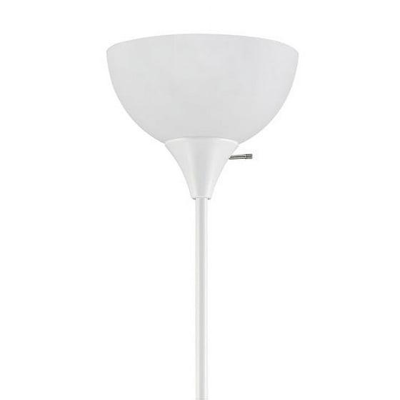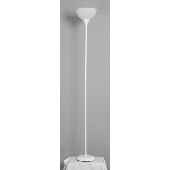 Brighten up any room with the Mainstays 71" JK1559WH floor lamp. Featuring a classic white finish on a durable metal pole set on a 9” sturdy plastic base. A 3-way socket switch allows you to choose the perfect amount of light for any situation, whether you need to brighten the entire room for guests or curl up with a book. Uses a 150 watt incandescent light bulb or equivalent (not included). A white color lamp shade enhances the lamp’s minimal and classic silhouette allowing for just the right amount of ambient light. The sleek and modern design makes this lamp a perfect addition to any adult living room, bedroom, or home office and a must-have for young adult college living spaces.