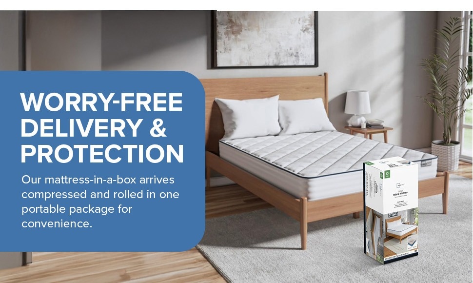 - WORRY-FREE DELIVERY & PROTECTION: Our mattress-in-a-box arrives compressed and rolled in one portable package for convenience, making it easy to maneuver through narrow stairways or halls for setup in minutes.