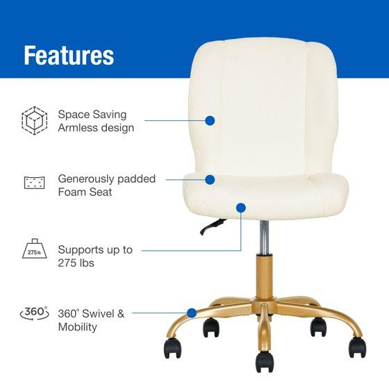 Mainstays Bouclé Armless Office Chair for Adults and Teens, Cream