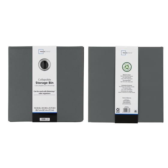 Our Mainstays Collapsible Fabric Storage Bins are just what you need to help you create an organized home. Perfect for storing kids to adult clothes, books, electronics and more, these bins' 10.5-inch by 10.5-inch by 10.75-inch size offers plenty of room to keep a wide variety of belongings neatly tucked away and their sturdy, round metal handle allows you to pull them off shelves with ease. You can utilize our Mainstays Storage Bins organizational expertise in your living room, bedroom, dorm room, or even your office. When not in use, you can easily fold the bin down flat and keep it stored away for later. The bins are made to fit with our Mainstays Cube Storage Organizers and are designed with a durable polyester fabric that holds their shape. With a variety of colors to choose from, you'll be able to perfectly match your home decor when you get organized with our Mainstays Collapsible Fabric Storage Bins.