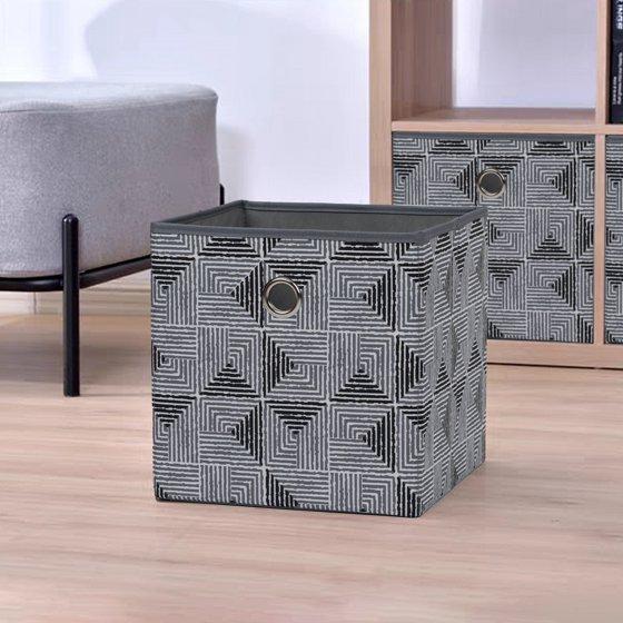 - Mainstays Collapsible Fabric Storage Bin, Black and Gray Geometric, 10.5 in x 10.5 in x 10.75 in