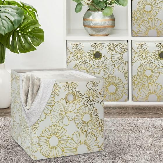 Mainstays Collapsible Fabric Cube Storage Bin, Gold Metallic