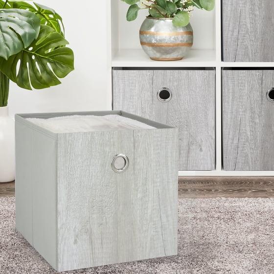 Mainstays Collapsible Fabric Cube Storage Bin, Grey Wood Grain