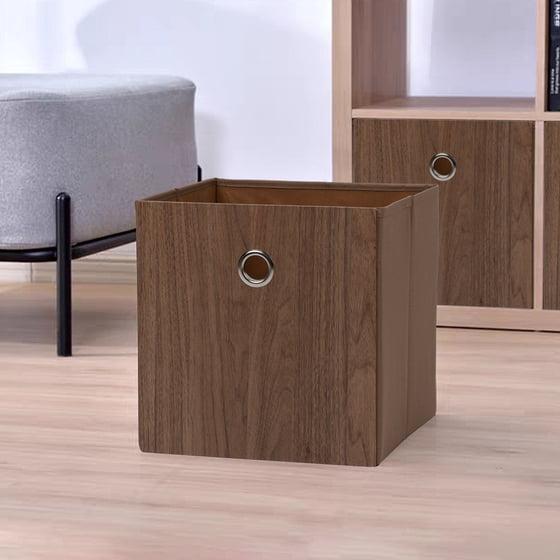 Mainstays Collapsible Fabric Cube Storage Bin, Natural Wood, 10.5 in x 10.5 in x 10.75 in