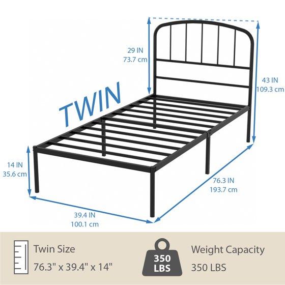 - Size & Weight: Twin bed frame size: 75x39x14", Maximum load capacity: 350Lbs. Stable without shaking and squeaking