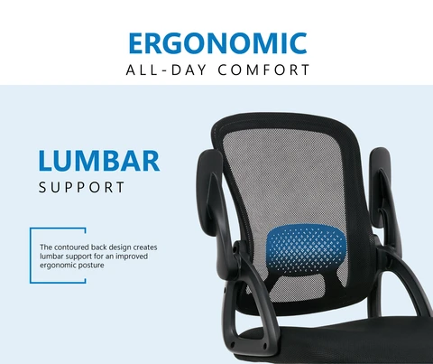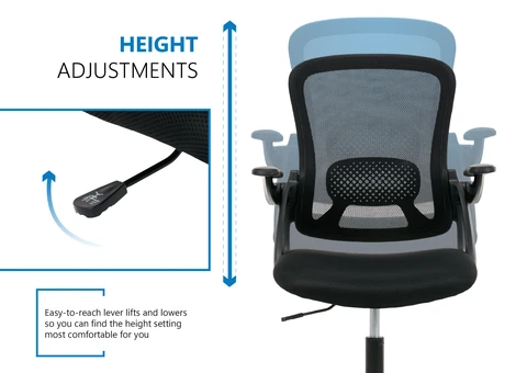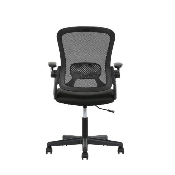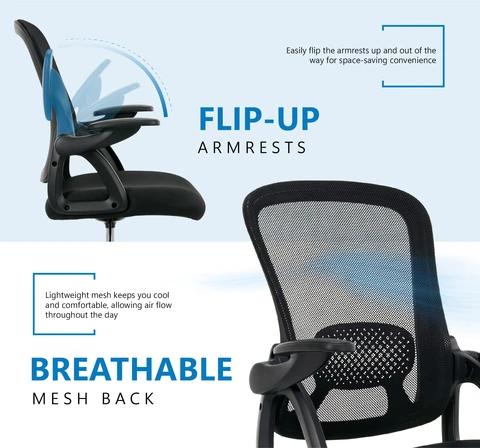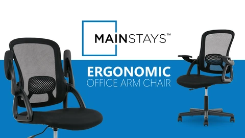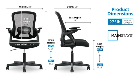 Mainstays Ergonomic Mesh Back Office Chair with Flip Up Arms for Adults, Black Fabric, 275lb