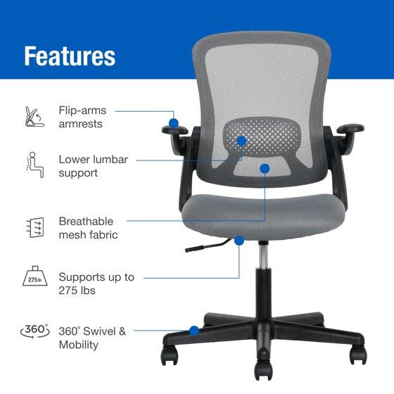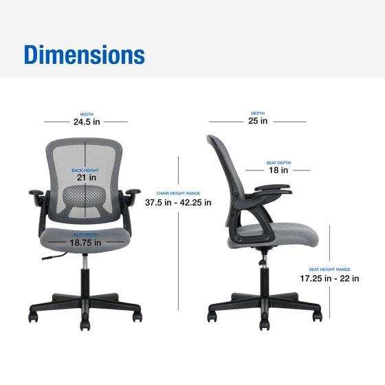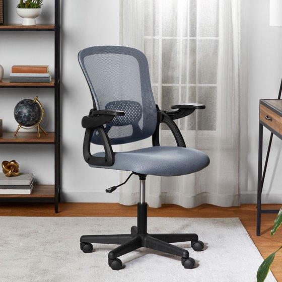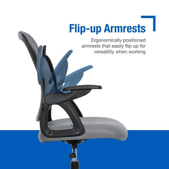 Mainstays Ergonomic Mesh Back Office Chair with Flip Up Arms for Adults, Grey Fabric, 275lb