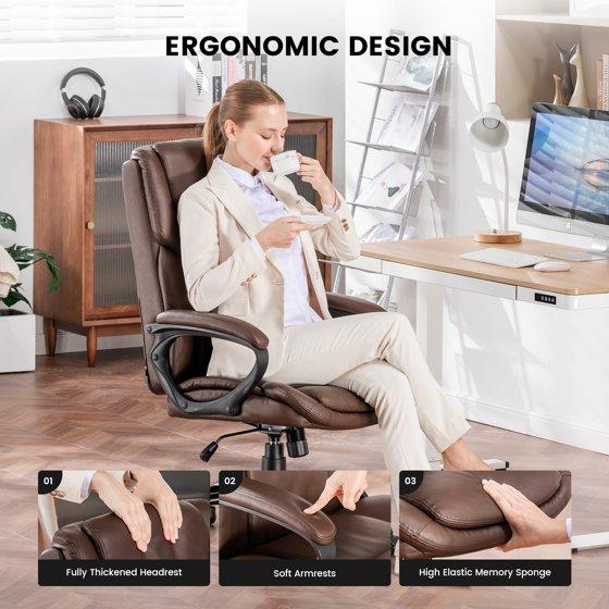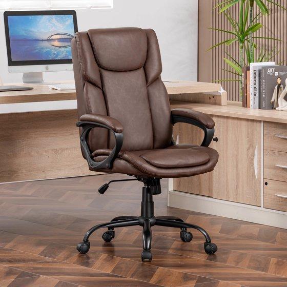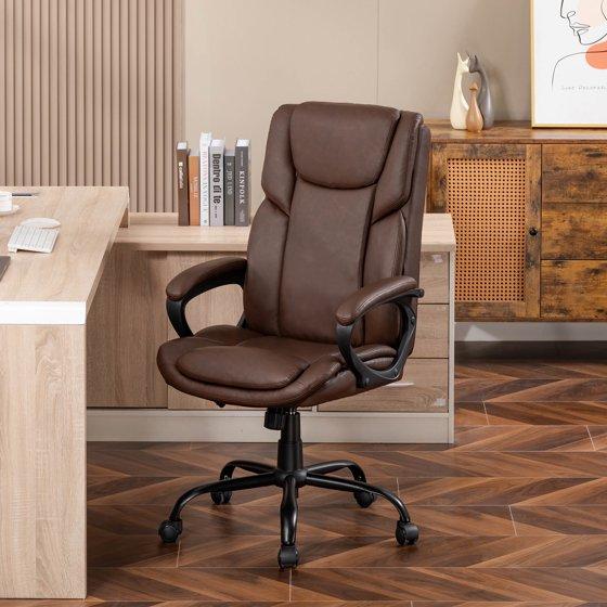 Mainstays Executive Ergonomic High Back Leather Home Office Desk Chair, Brown