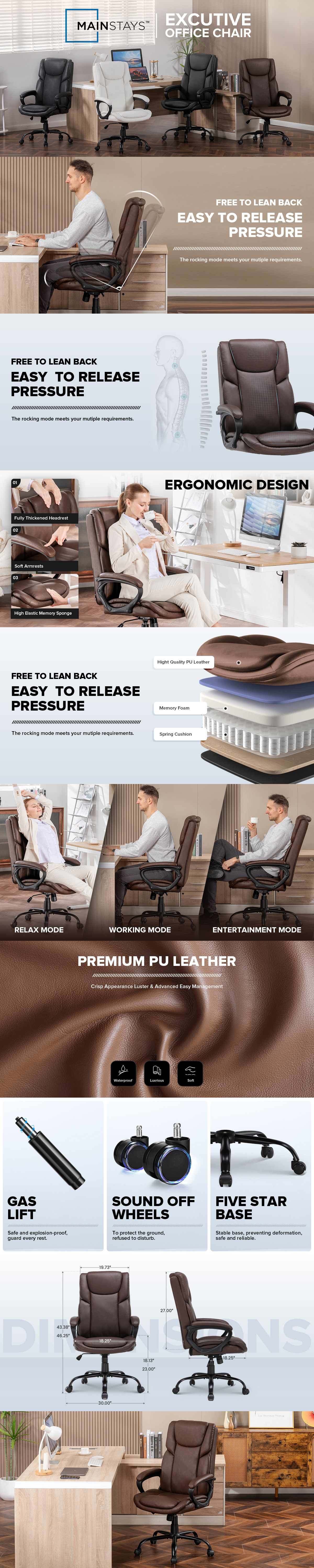 - Ultimate Comfort: The Mainstays Executive Office Chair high-resilient memory foam that molds to your body for personalized support, ensuring hours of comfort.