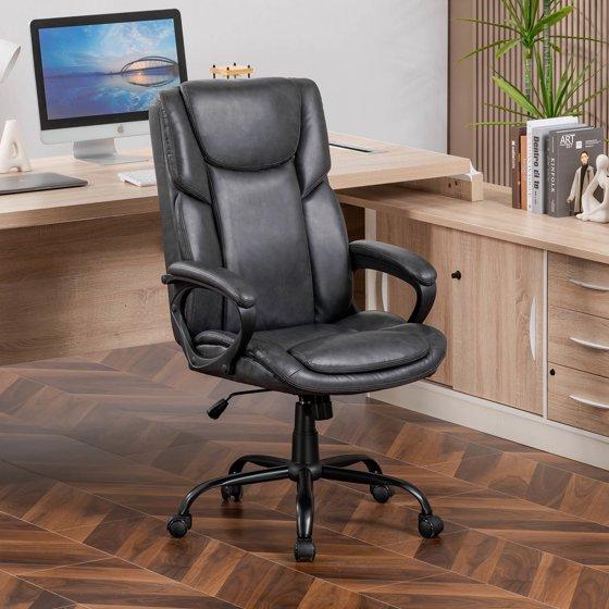 Mainstays Executive Ergonomic High Back Leather Home Office Desk Chair, Gray