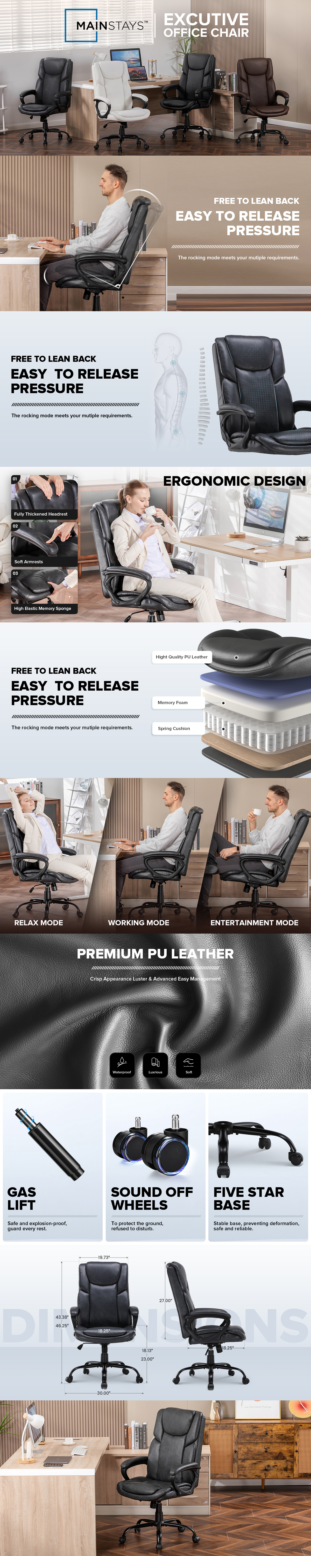- Ultimate Comfort: The Mainstays Executive Office Chair high-resilient memory foam that molds to your body for personalized support, ensuring hours of comfort.