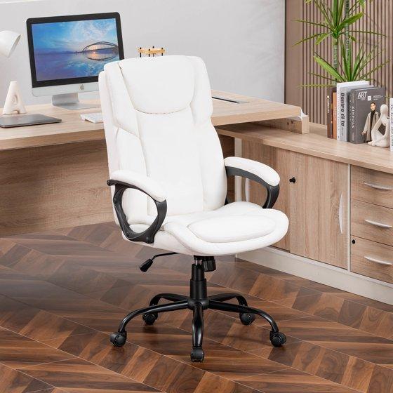 Mainstays Executive Ergonomic High Back Leather Home Office Desk Chair, White