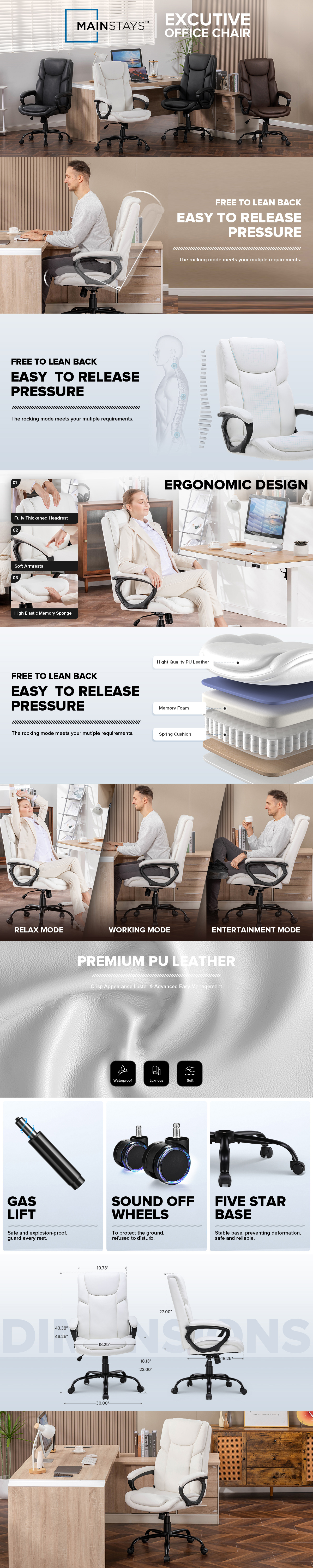 - Ultimate Comfort: The Mainstays Executive Office Chair high-resilient memory foam that molds to your body for personalized support, ensuring hours of comfort.