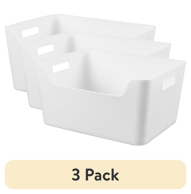 (3 pack) Mainstays Extra Large White Easy Access Plastic Storage Bin, 11 in x 14.3 in x 7 in