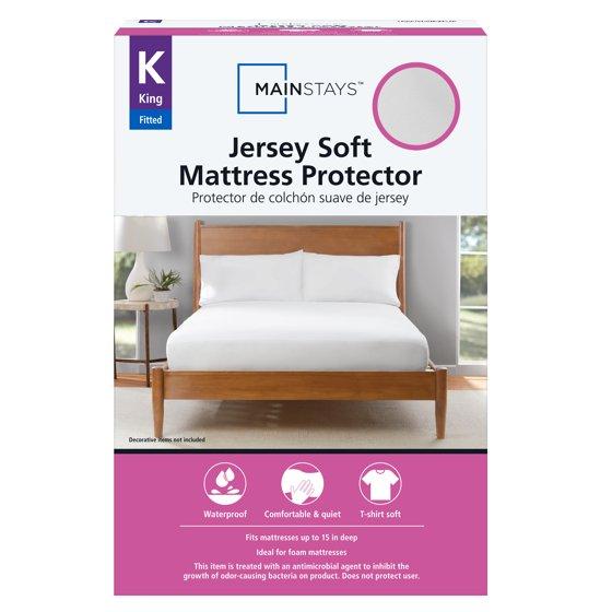 Mainstays Jersey Soft Fitted Mattress Cover Protector, King - Waterproof, Antimicrobial