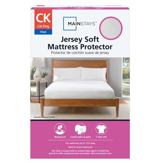 Mainstays Jersey Soft Fitted Mattress Cover Protector, Cal King- Waterproof, Antimicrobial
