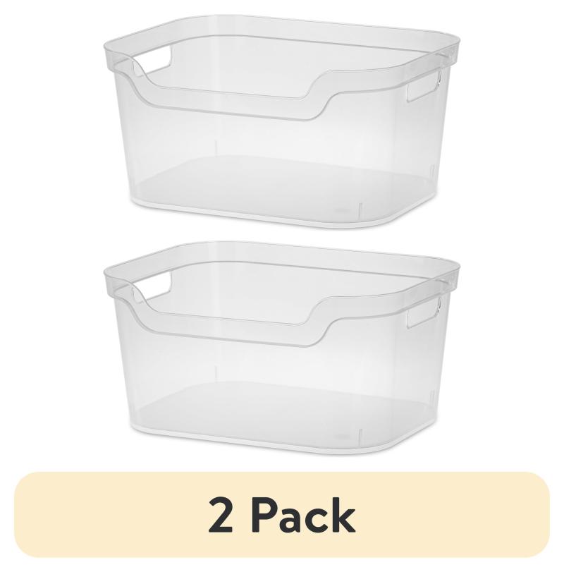 (2 pack) Mainstays Large Open Bin, Clear Plastic, Easy Access Bin with Scoop Front, Clear