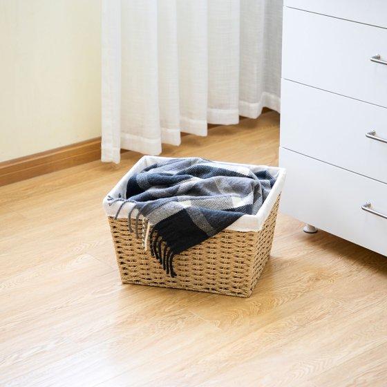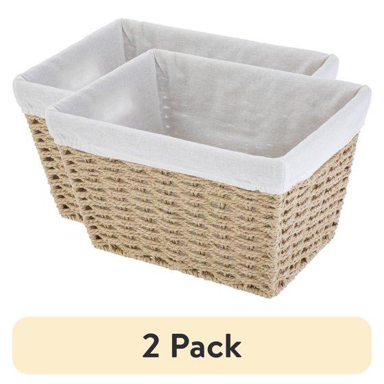 (2 pack) Mainstays Large Tan Woven Paper Rope Decorative Storage Basket with Removable Liner, 16 in x 9.7 in x 13.4 in