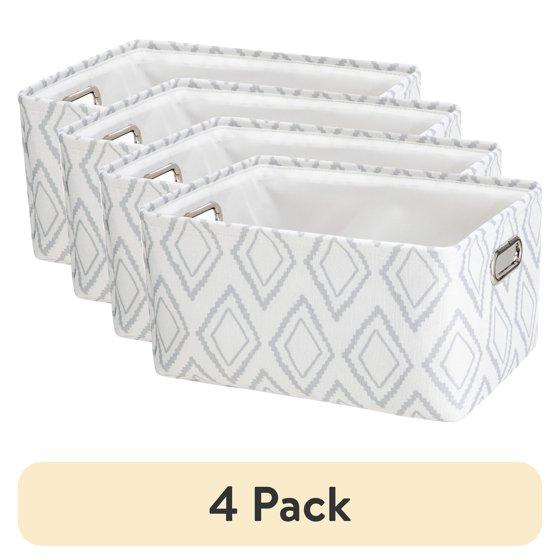 (4 pack) Mainstays Light Gray Diamond Canvas Fabric Decorative Storage Basket with Handles, 15 in x 8 in x 11 in