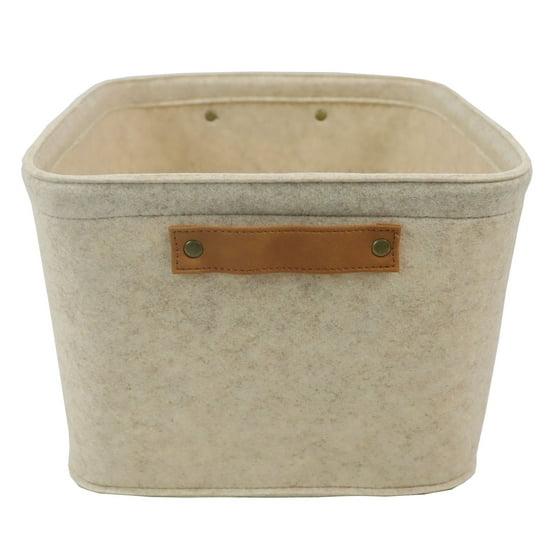 Mainstays Medium Felt Decorative Storage Basket, Oatmeal, 15 in x 11.02 in x 7.87 in