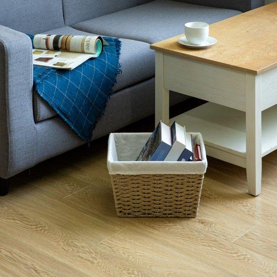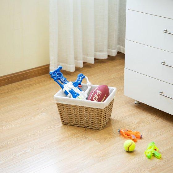 Mainstays Medium Tan Woven Paper Rope Decorative Storage Basket with Removable Liner, 13 in x 7.8 in x 9.8 in