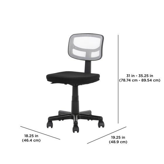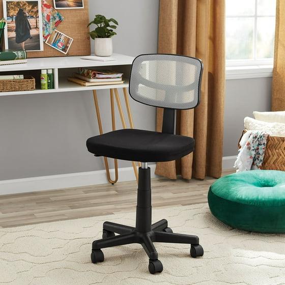 Mainstays MS33100049708WH Armless Height-Adjustable Low-Back Task Chair with Plush Padded Seat, White Mesh
