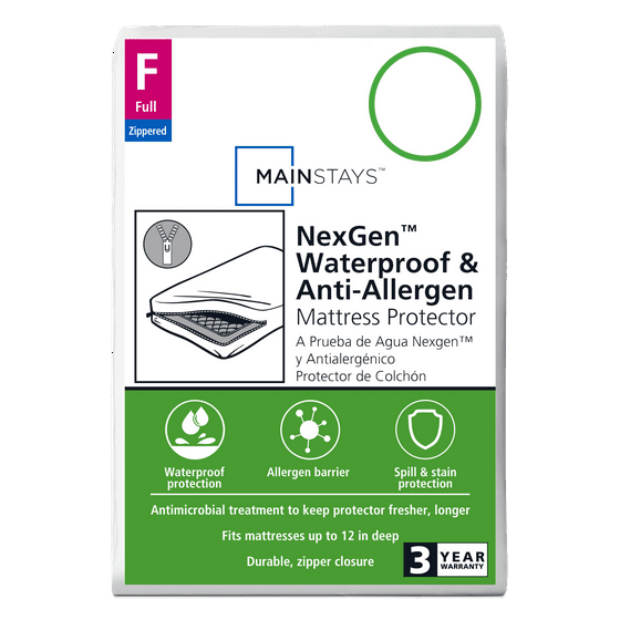 - Mainstays NexGen Waterproof Anti-Allergen Zippered Mattress Protector, Full