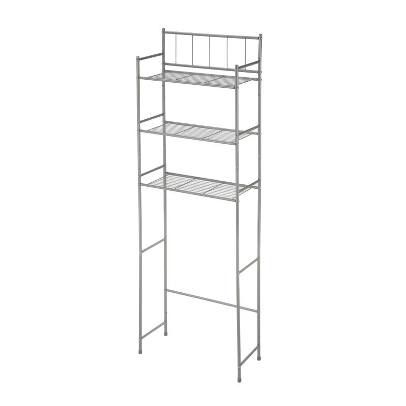 Mainstays Over-the-Toilet Bathroom Storage Shelf Unit Set with Space Saver, Basket and Hooks, Satin Nickel, 4-Piece