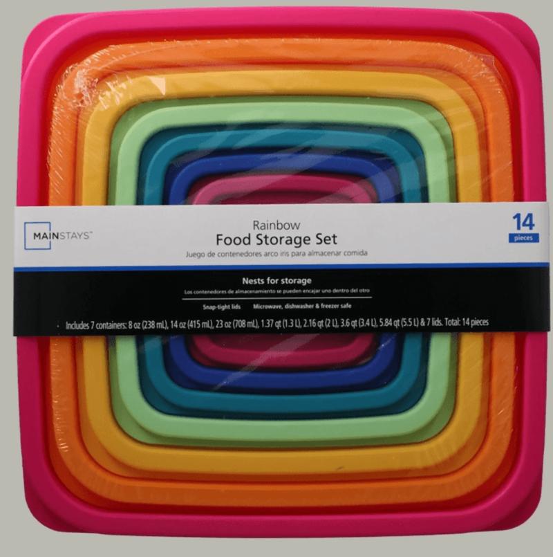 Mainstays Plastic Rainbow Food Storage Set, Multi Color, 14 Count, Best Used for Leftover Storage and Reheating