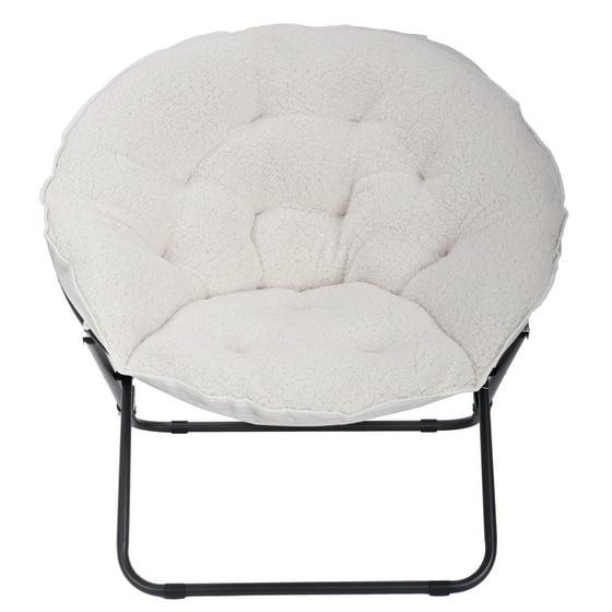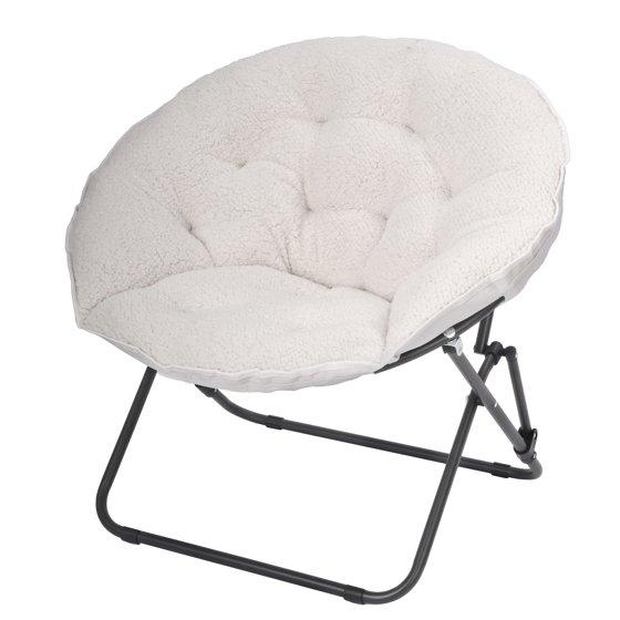 Mainstays Saucer Chair for Kids and Teens, White Faux Shearling