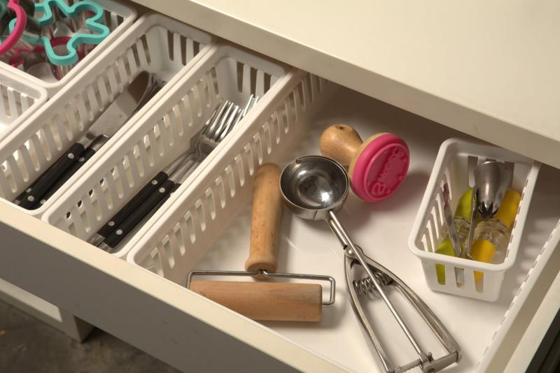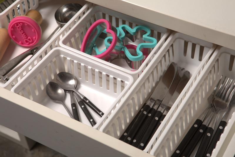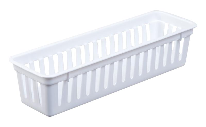 Perfect for storing all kinds of household items, the Mainstays Set of 3 Drawer Storage Narrow Utility Baskets help keep your home more organized. With a slotted design that allows light and air to pass through which helps inhibit mold growth, this set of three dishwasher-safe baskets are perfectly sized for use individually or as a group that fits inside most standard sized drawers. These baskets are perfect for storing office supplies, kitchen items and small gadgets, tools and parts for repairs, scissors, spare change, and a variety other items almost anywhere. The Mainstays Set of 3 Drawer Storage Narrow Utility Baskets are constructed of sturdy plastic for a long life of use in your home.